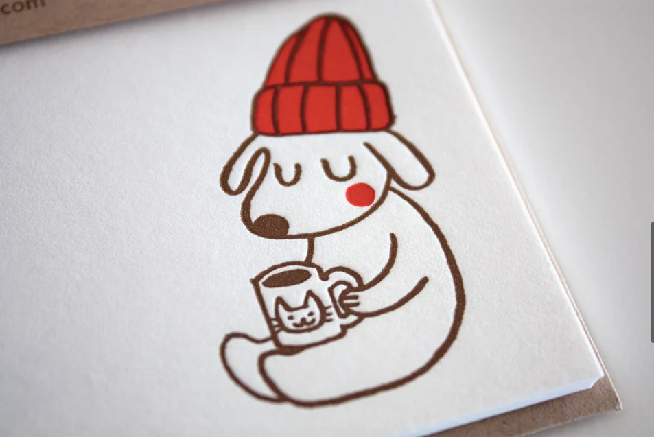 Hello Hello Dog Letterpress Flat Note Card | Fugu Fugu Press (CA)