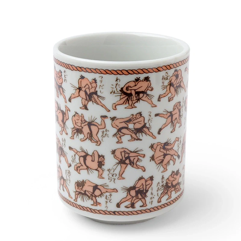 This particular shape and size of teacup is also often referred to as a sushi cup. This one shows you important sumo moves that will help you in life. Â